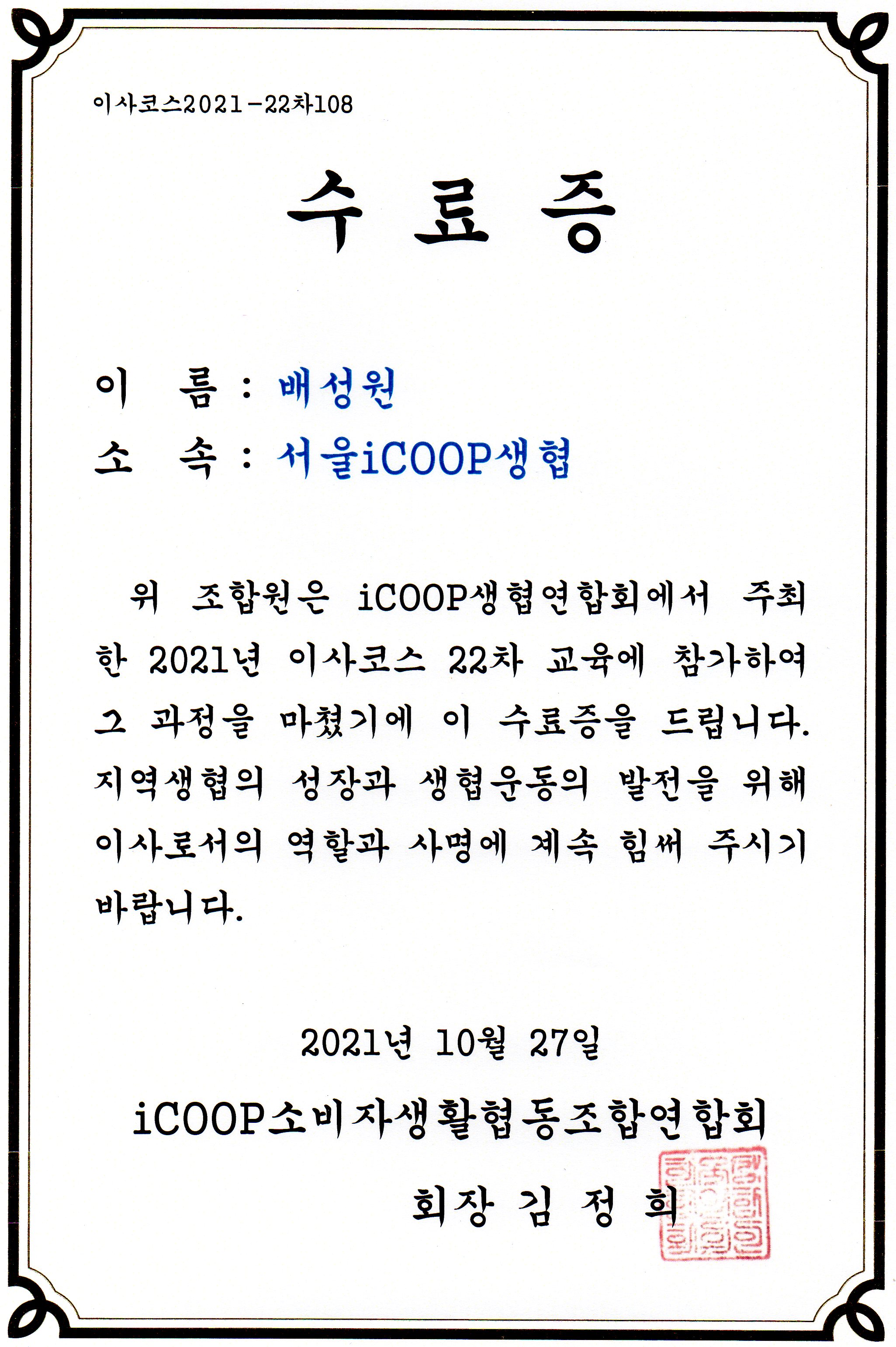 *2019년부터 2023년 2월까지 서울아이쿱생협 이사 겸 물품위원장으로도 활동하였다.