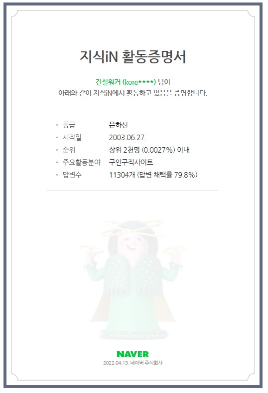 누적 답변수는 1만1천300건을 넘었으며, 총 9천500여명에게 도움을 주었다. 특히 구인구직사이트 분야에서 '전문가 순위 1위'를 기록하고 있다.