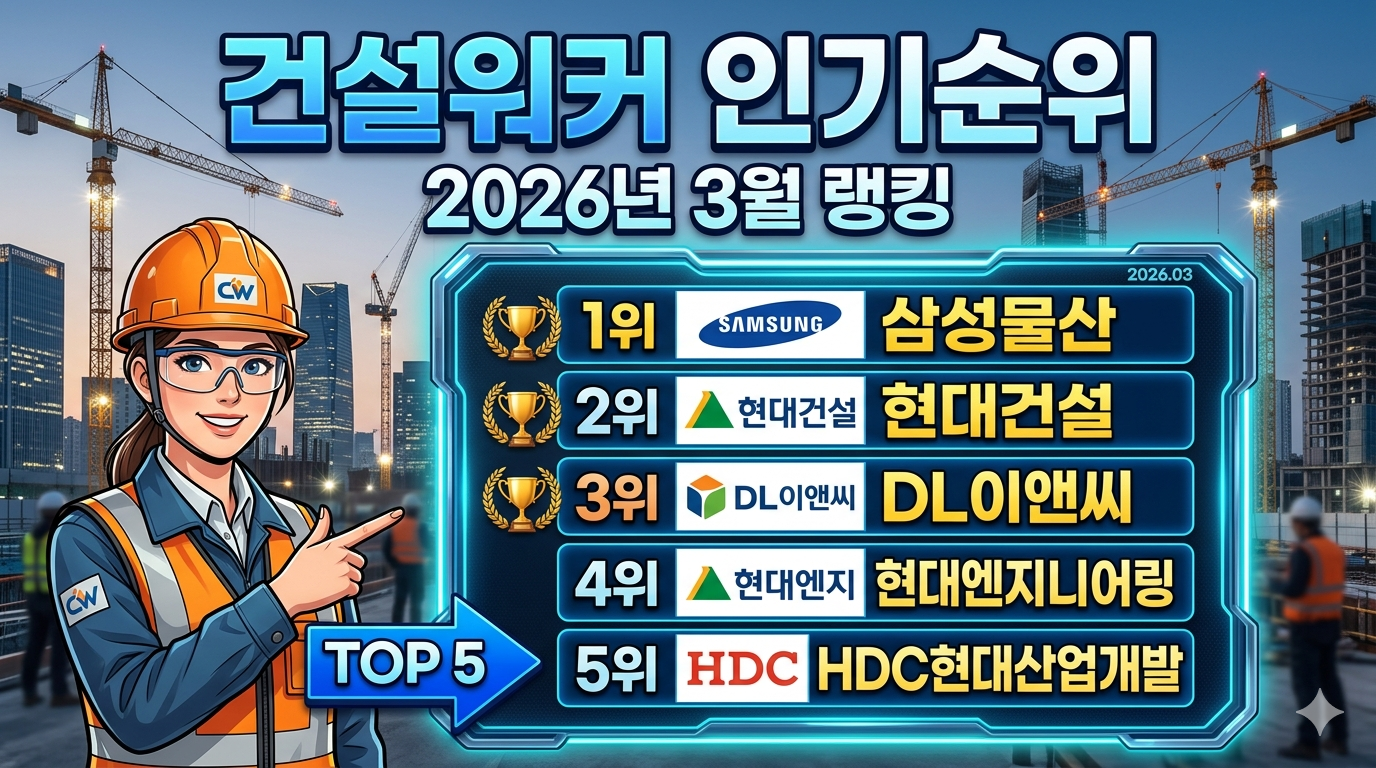 🏷 #건설워커랭킹 #2026년3월 #건설사취업인기순위 #건설사채용흐름 #건설HR트렌드 #채용신호 #건설사브랜딩 #건설취업전략 #건설데이터랩 #채용마케팅
