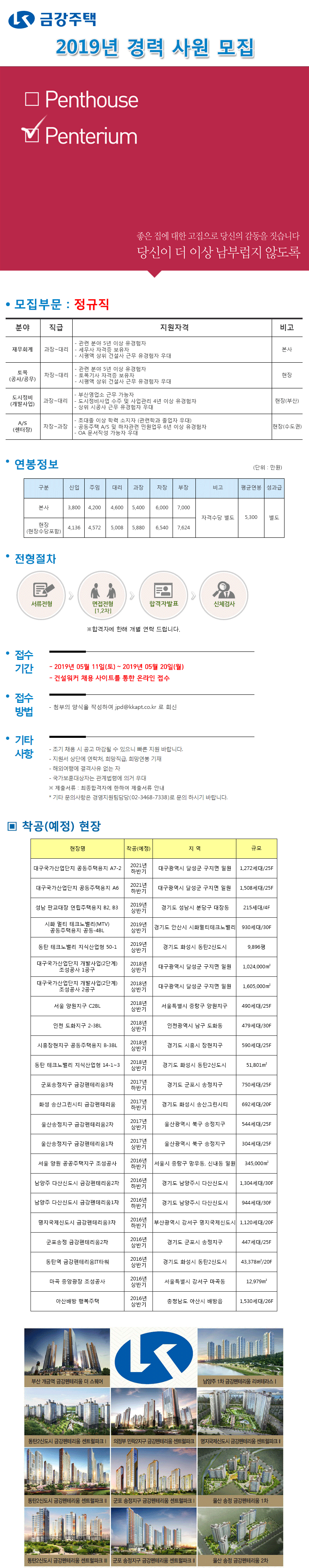 [건설워커 JOB속보=2019-05-17] 금강주택이 정규직 경력사원을 모집한다.