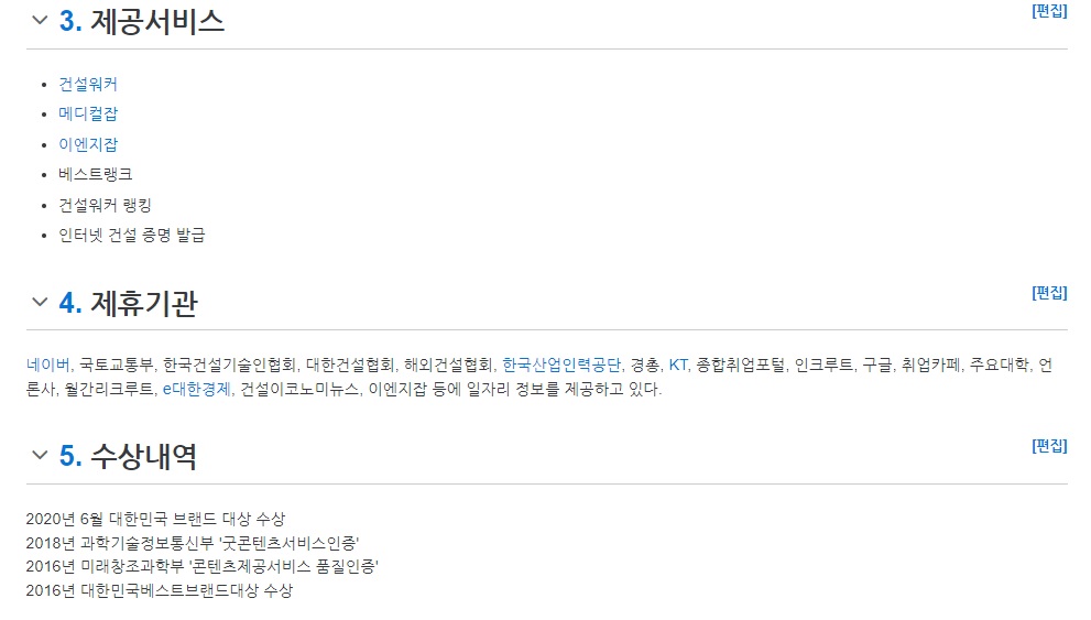 백화점식으로 온갖 정보를 망라하는 일반 취업포털과 달리 건설워커(건축·토목), 이엔지잡(이공계), 메디컬잡(보건·의료) 등 3개의 '맞춤형 취업플랫폼'을 운영하며 건설-과학기술-의료분야 전문취업 플랫폼시장을 선도하고 있습니다.